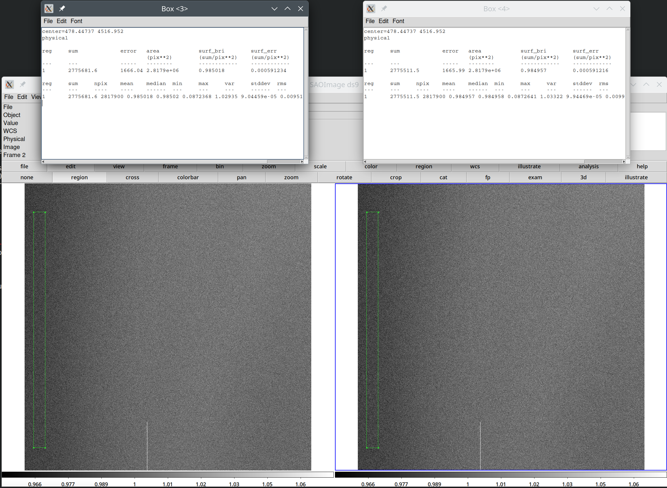 4秒的带快门效应的LED平场与10秒的带快门效应的LED平场完全相同,表明仿真中的快门效应没有正确处理不同曝光时间下遮蔽百分比的变化